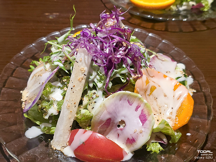 사진과는 다르게 토핑이 함바그에 세팅되지 않고 별도로 나왔다.